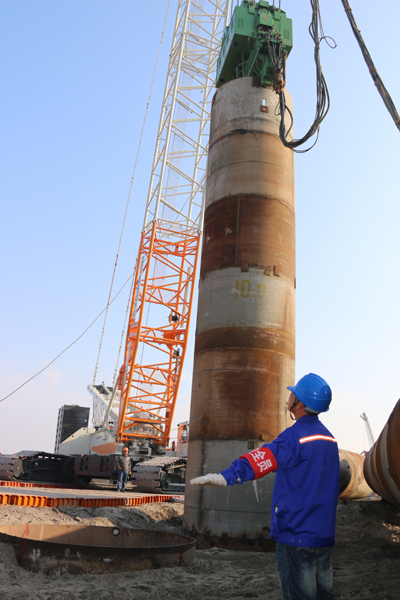 11月11日,由中鐵大橋局承建的武漢青山長江大橋19號南主墩樁基首根鋼護(hù)筒順利插打到位,標(biāo)致著南主塔樁基施工拉開序幕,為南主墩開鉆創(chuàng)造了有利條件。