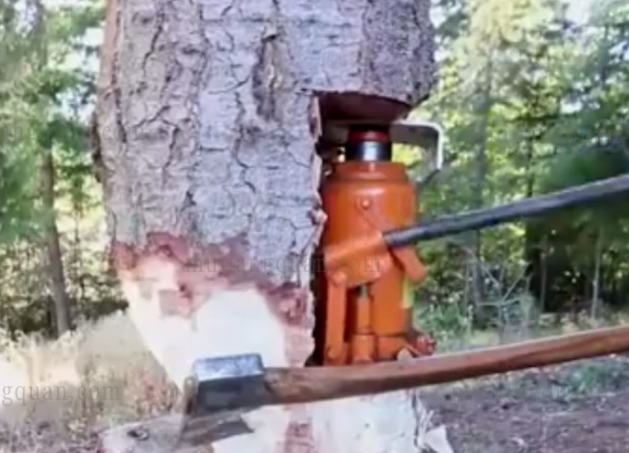 你認(rèn)為千斤頂僅僅是用來起重汽車,支撐橋梁嗎?那你就大錯(cuò)特錯(cuò)了,千斤頂?shù)淖饔眠h(yuǎn)不止這些,今天我們就來看一看千斤頂在伐樹時(shí)的妙用。